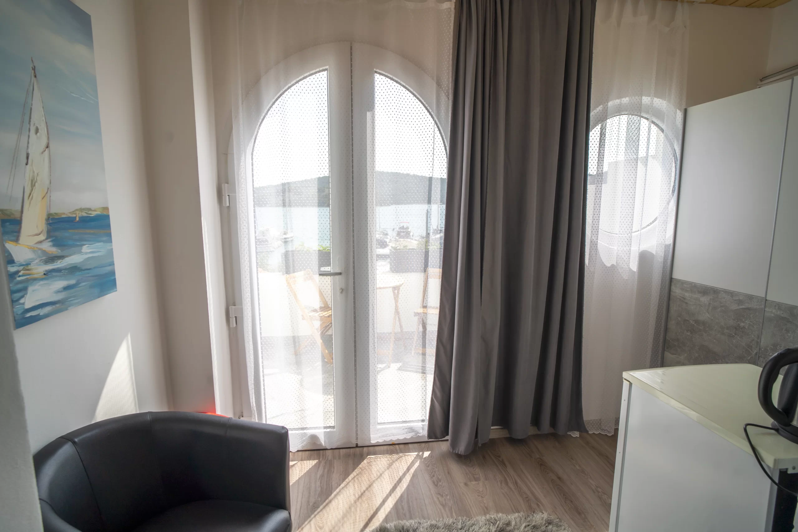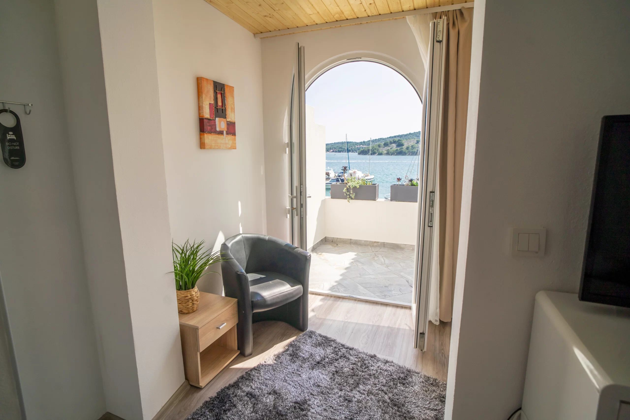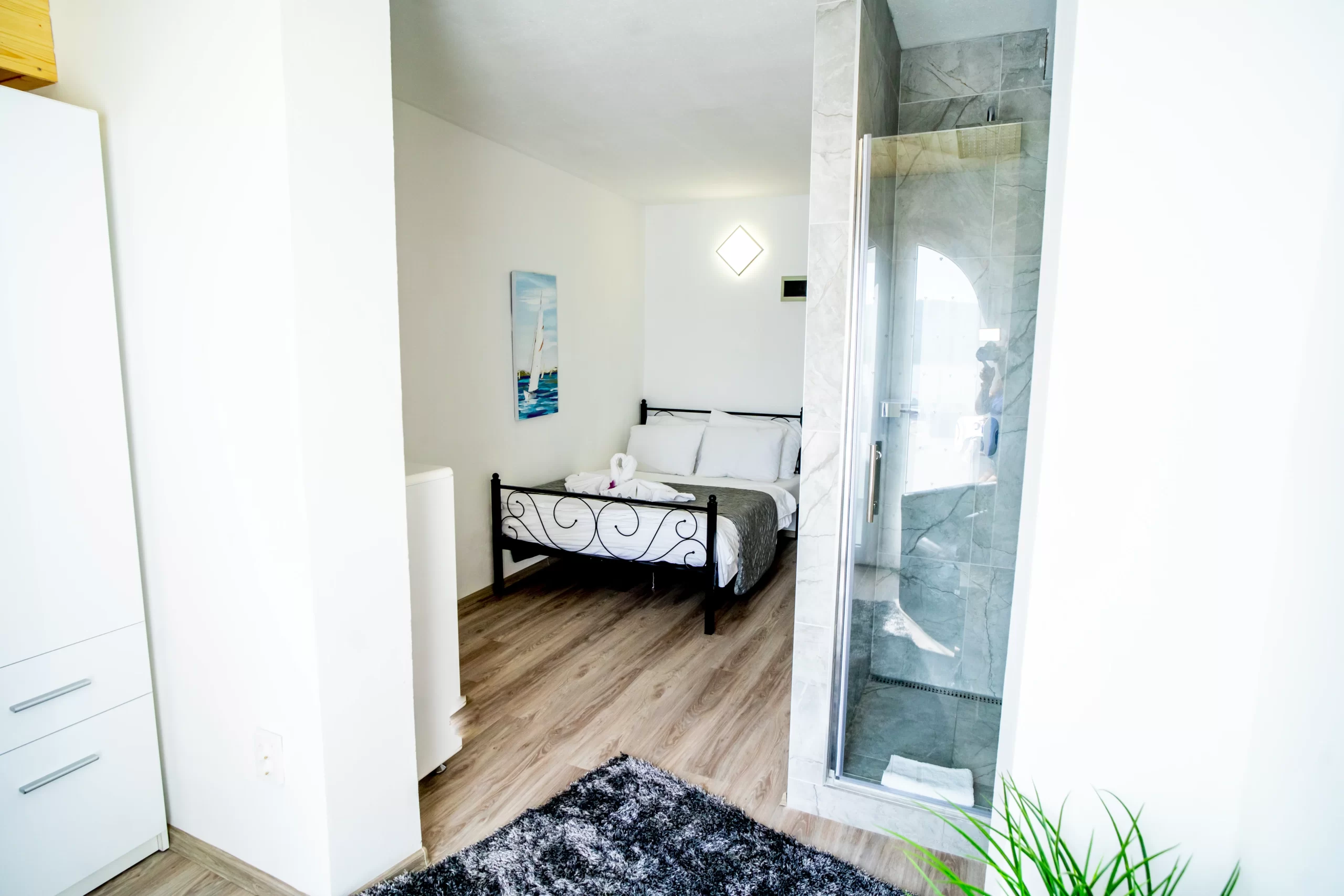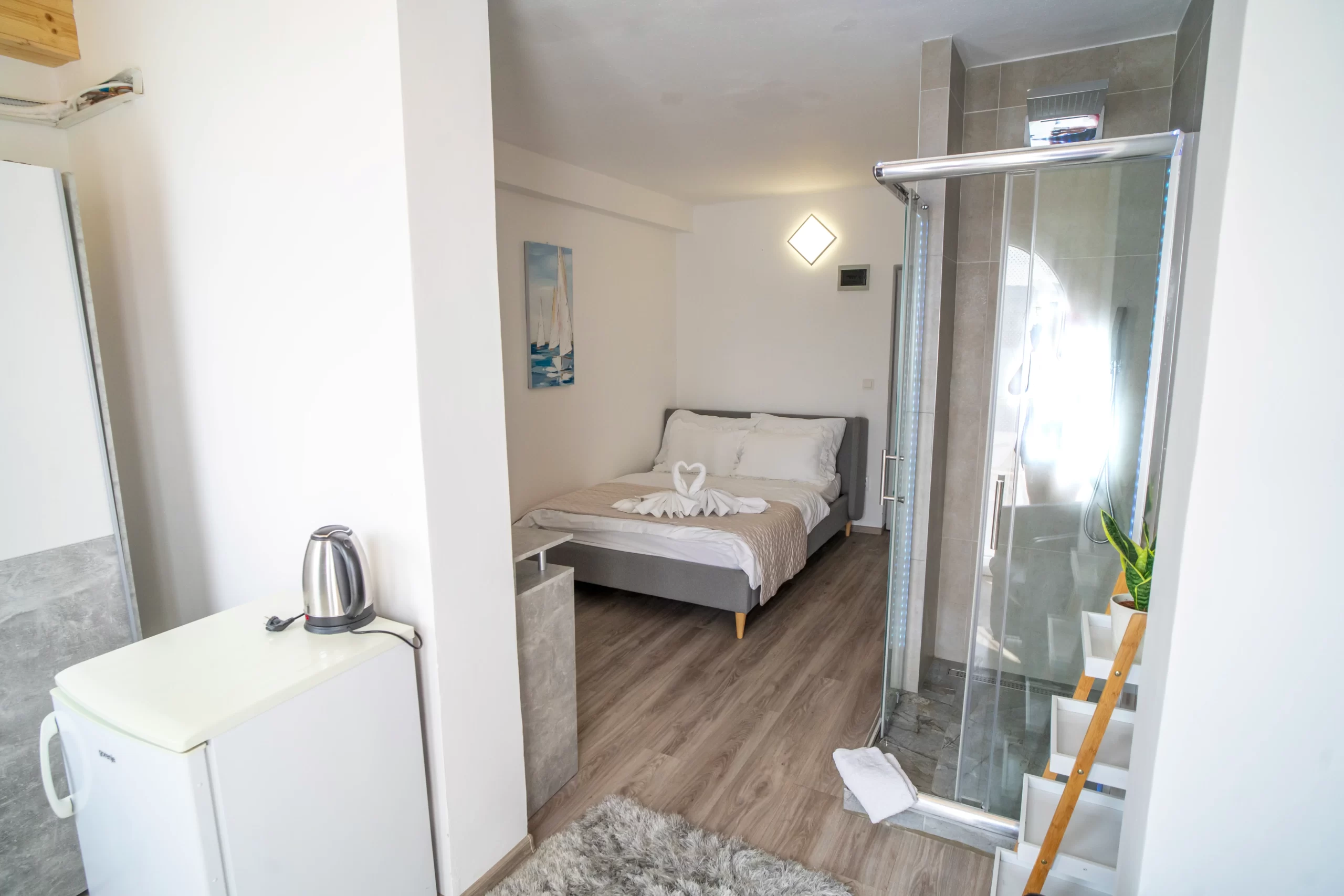Enjoy a cozy and private stay in our romantic room with a private balcony, offering stunning sea views — the perfect spot for morning coffee or watching the sunset. The room features a separate shower and toilet, and the shower offers a beautiful sea view, adding a touch of luxury. It also includes a comfortable 140 cm-wide bed, ideal for a cozy night for two.