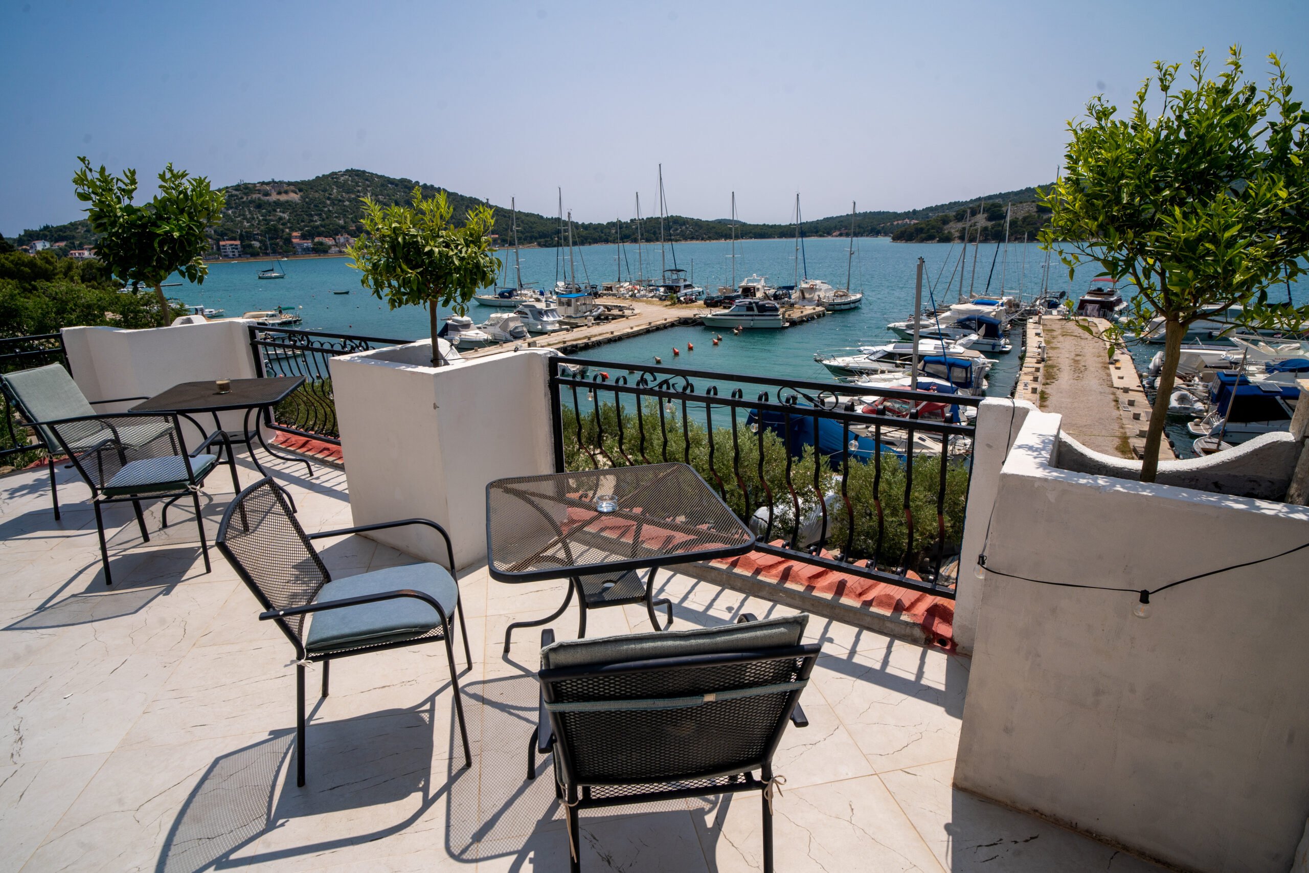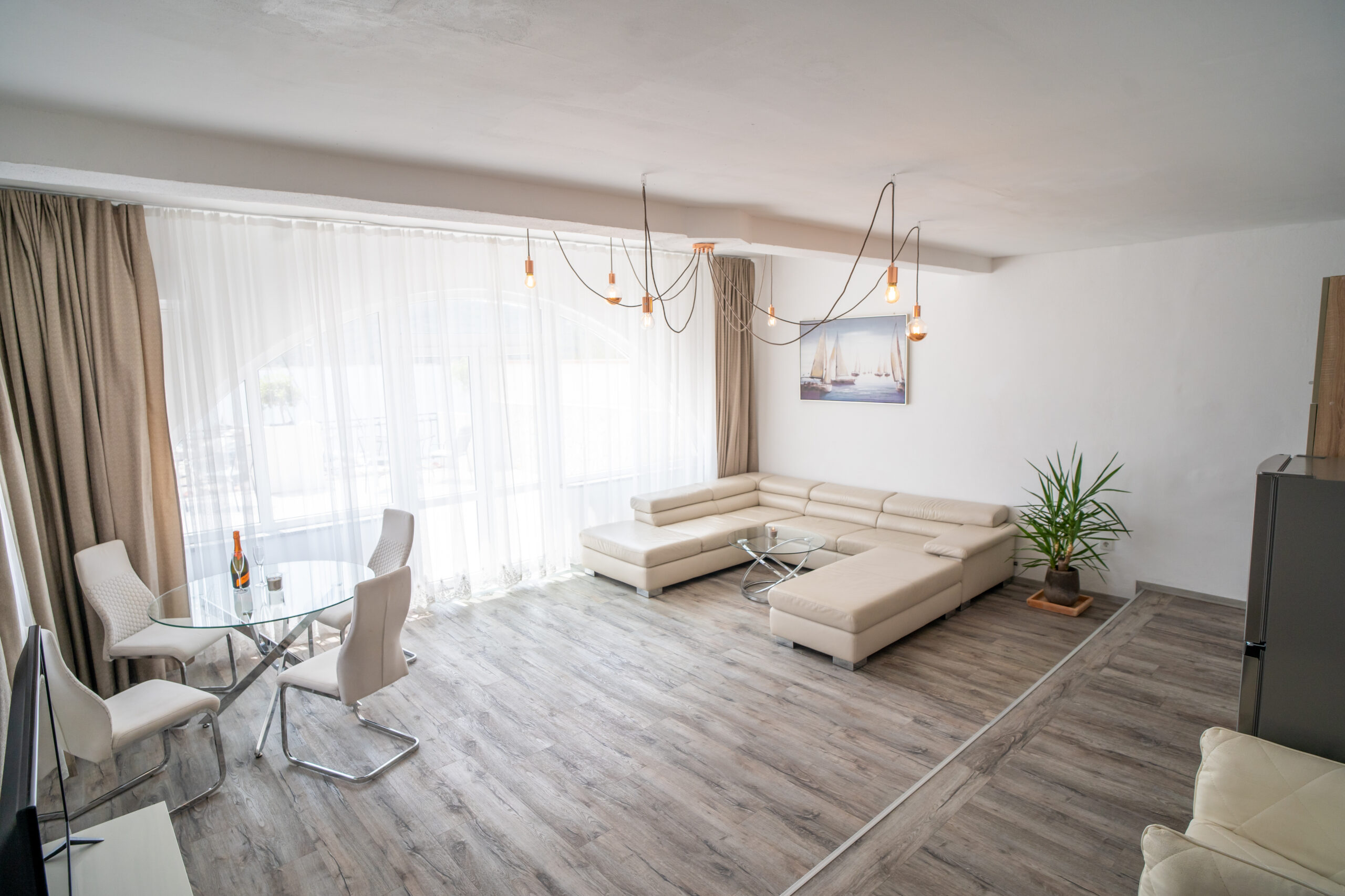 Experience refined coastal living in our Superior Adriatic Suite — a spacious 60 m² open-plan suite designed for comfort and style. Step onto the private 44 m² terrace, adorned with large potted citrus trees, and enjoy breathtaking panoramic views of the sea and the yacht marina. The terrace is thoughtfully furnished with sun loungers for relaxation and outdoor dining furniture for enjoying meals in the fresh air.